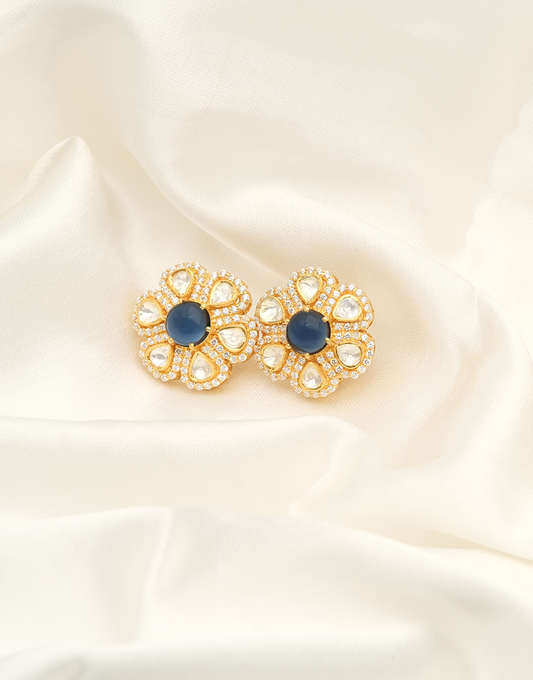 Kundan/Polki Silver Blue Floral Studs
