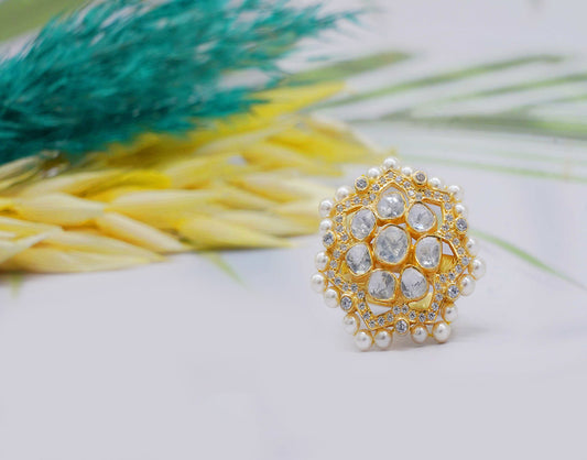 Kundan/Polki Adjustable Floral Ring