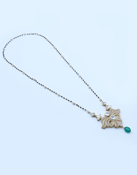 Kundan/Polki Emerald Silver Mangalsutra
