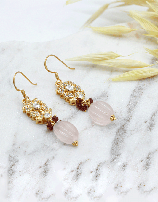 Kundan/Polki Pink Quartz Hanging Earrings