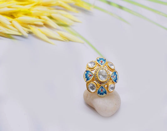 Kundan/Polki Adjustable Blue Enamel Ring
