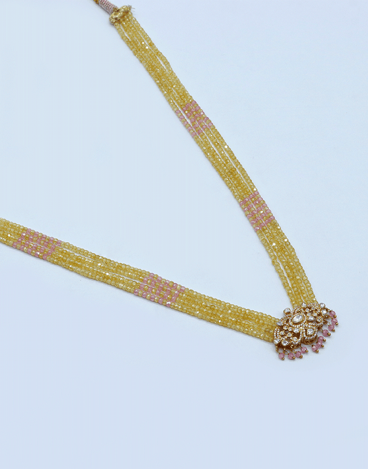 Moissanite Polki Pendant In Yellow Pink Beads Mala