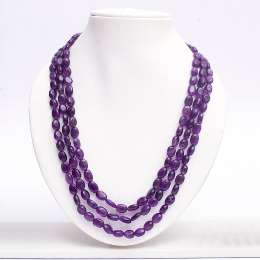 Amethyst 3 Line Mala Necklace (Plain)