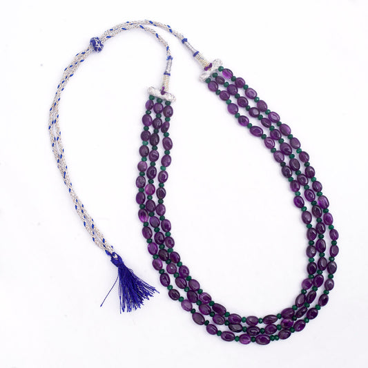 Amethyst 3-Line Mala Necklace (With Green Beads)