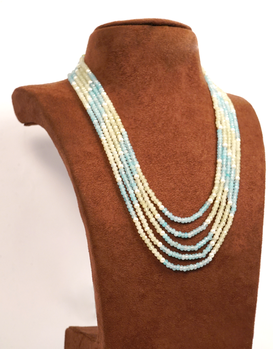 Pearl Aqua 5-Line Beads Necklace
