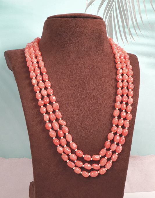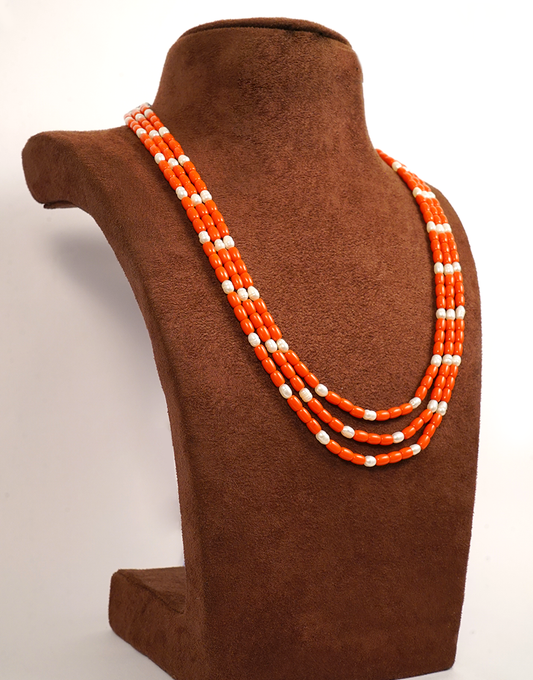 Pearl-Coral-3-Line-Mala Necklace