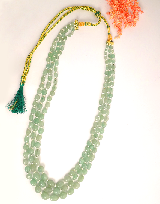 Pearl Jade 3-Line Mala Necklace (Green)