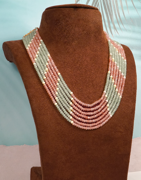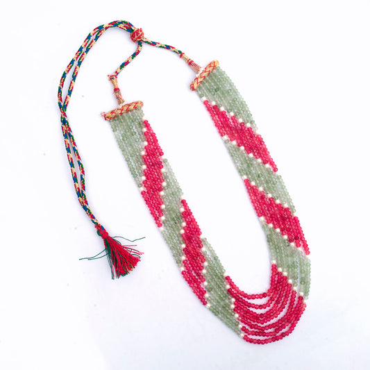 Pearl Jade 7-Line Mala Necklace (Pink-Green)