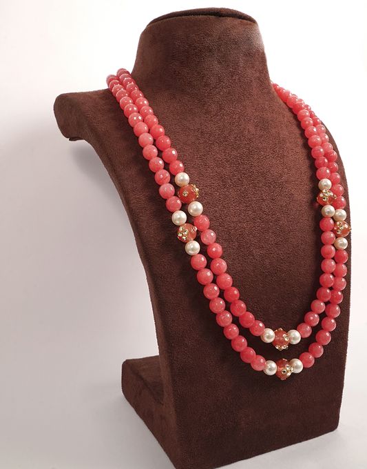 Pearls And Peach Mala Necklace