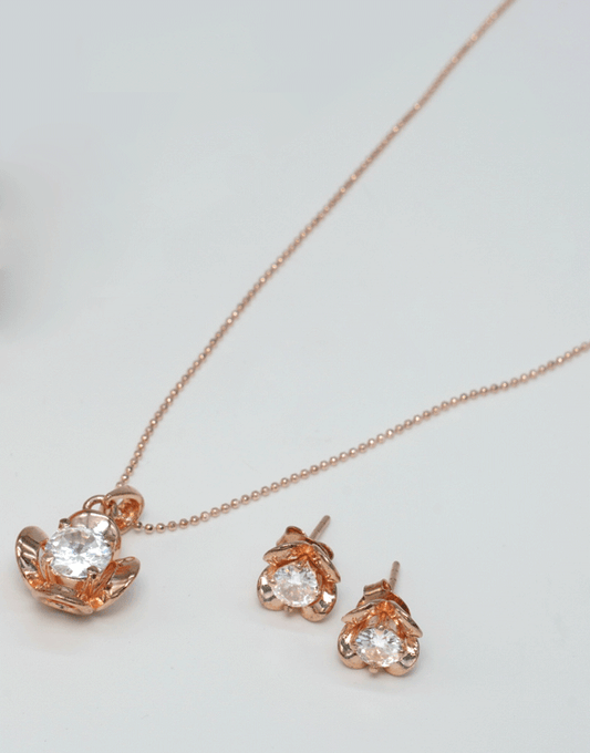 Rosegold 925 Flower Necklace Set