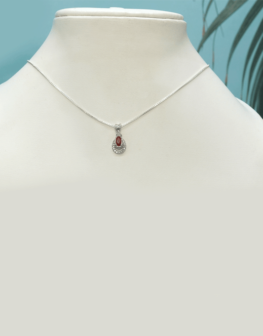 Silver Mini 2 Line Oval Pendant (Red)