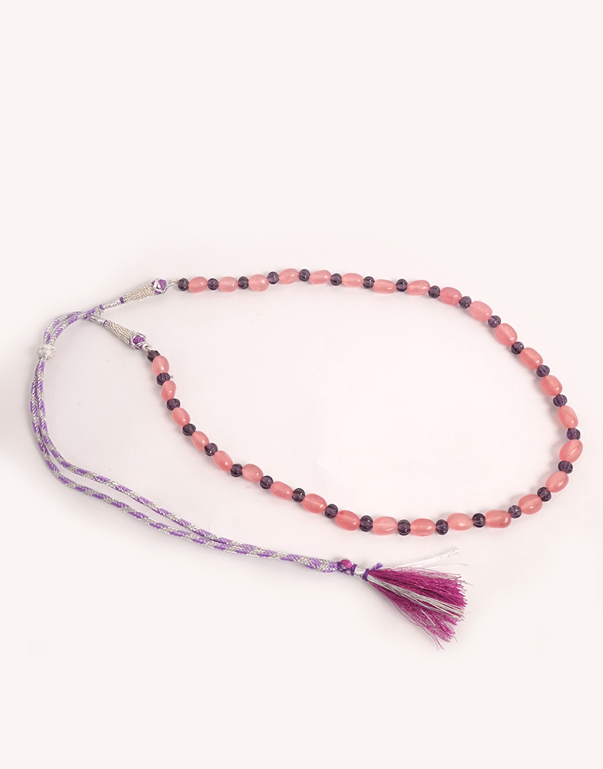 Details: Pink and purple beads are strung together in a pull dori at the back to snugly fit your neck.. Packed and shipped with love and care.